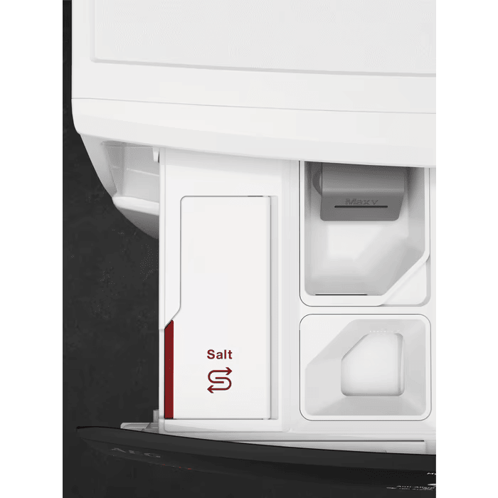 Er með þremur hólfum, fyrir þvottaefni, mýkingarefni og salt.  Auðvelt er að taka sápuhólfið úr og þrífa.